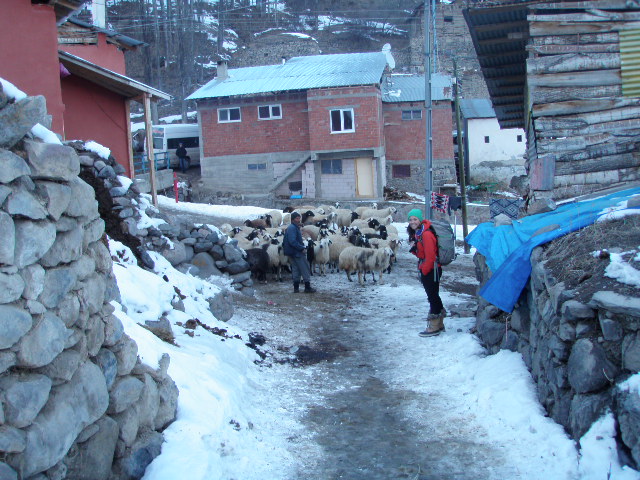 Saturday night we ended up getting in contact with Tunҫ, and he informed us that they would be in Uzunkavak Sunday morning and hiking for about an hour from the village. So Sunday morning came, and we hurried back out to Uzunkavak, not knowing where we were exactly, or if we would ever actually find them. Eventually we rounded a corner and were suddenly in the midst of at least 20 people just getting ready to head out and climb! We found Tunҫ, and he told us today probably wasn’t a great day since everybody was just so eager to get out and climb, so we might not get to do any climbing. But we were ok with that, just being around these people and being outside watching ice climbing was enough for us! We packed up all the gear we had, and headed out to the backcountry.